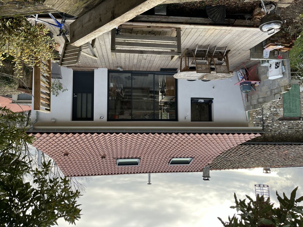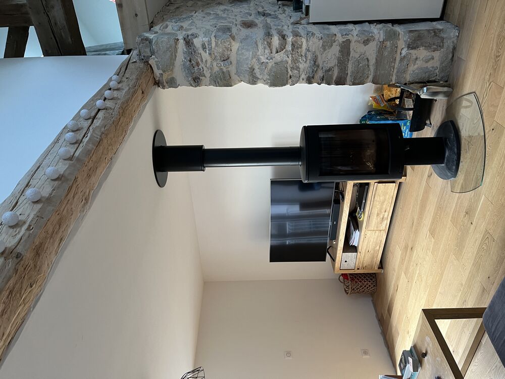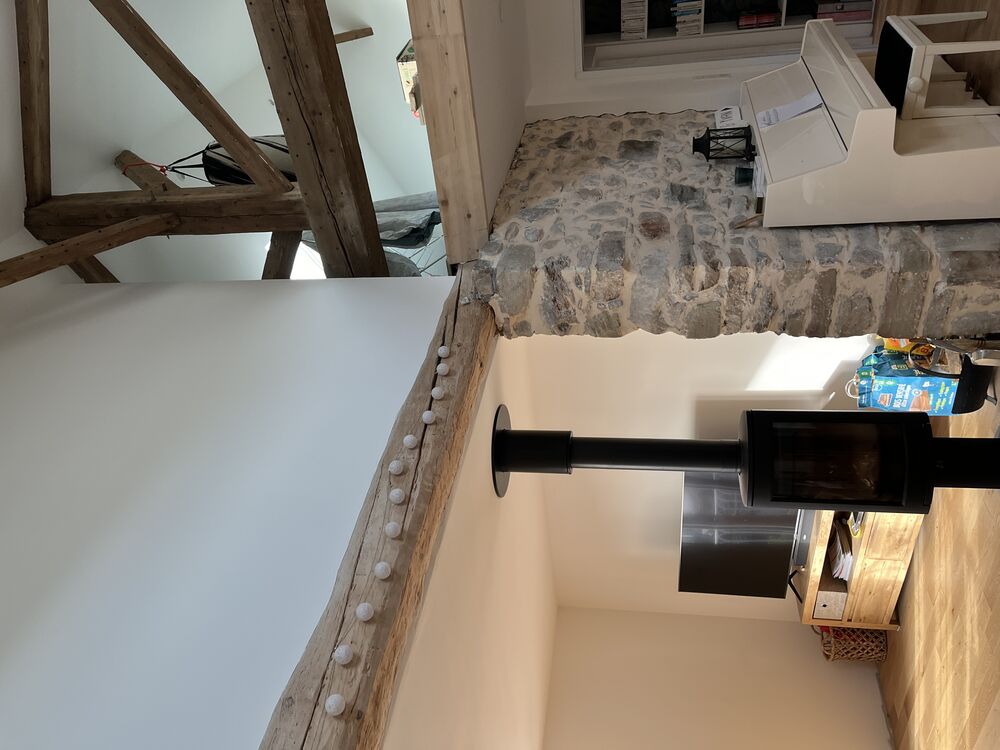 Murs existants pierre rivière, isolation intérieur Métisse, toiture charpente traditionnelle en tuiles.
