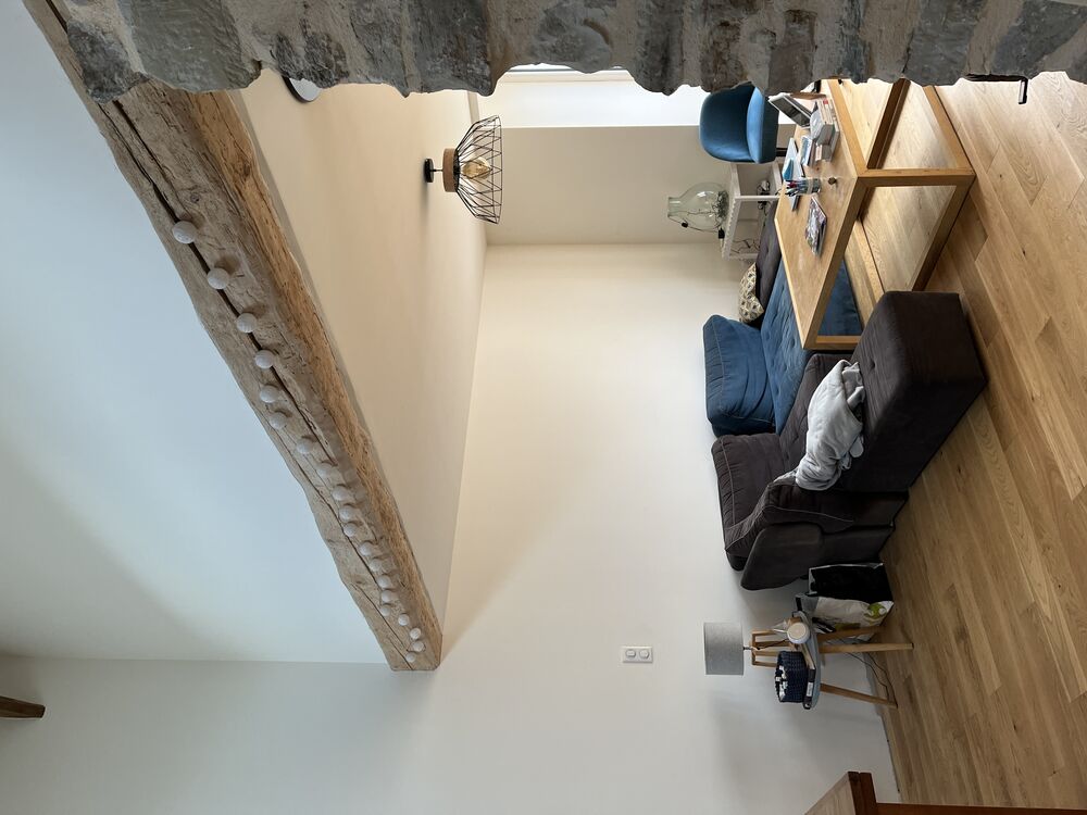 Les planchers sont en bois massif et la peinture (Algo) est fabriquée en France à base l’algues. Par soucis d’économie, ces prestations ont été réalisées par les clients.