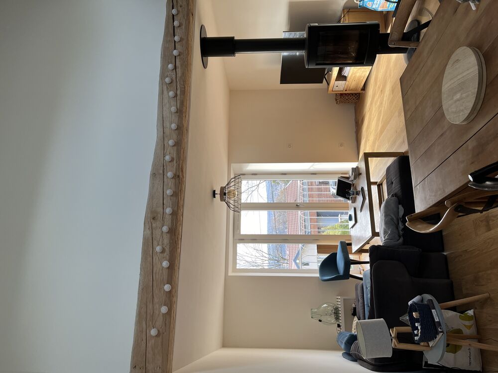 La suppression de la dalle du grenier offre un séjour cathédral lumineux et volumineux qui découvre la charpente et apporte de l’éclairage dans le cœur auparavant le plus sombre de la maison.